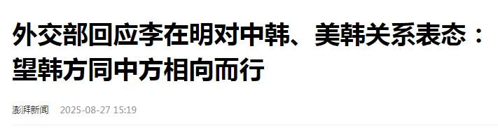 面对美国全方位的高压态势,8月27日,中国外交部发言人郭嘉昆明确回应:“中韩关系发展源于双方共同利益,不针对第三方,也不应受第三方因素影响。”